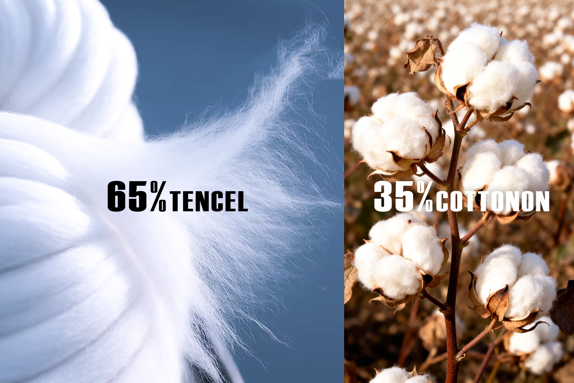 由65%天丝和35%棉制成,天丝源自桉树叶。这种面料触感顺滑、清爽且透气。天丝提供天然的吸湿排汗舒适感,而棉则带来柔软和耐用性。两者结合,营造出清新、温和且舒适的质感,是日常睡眠的理想选择。